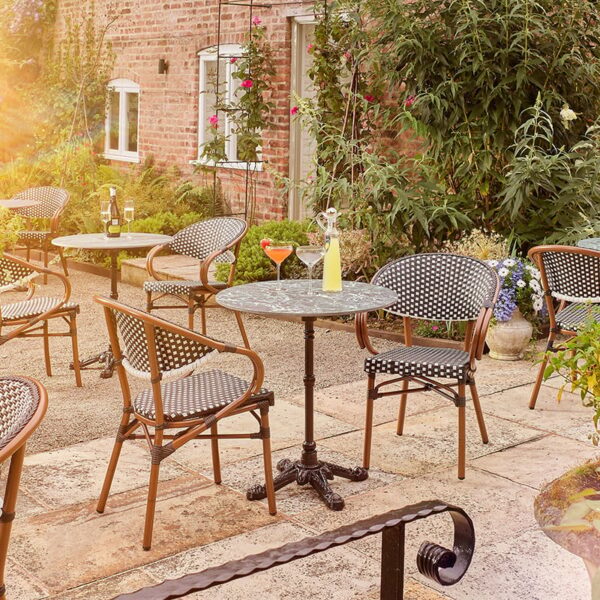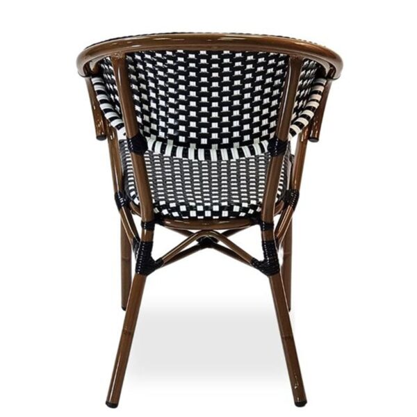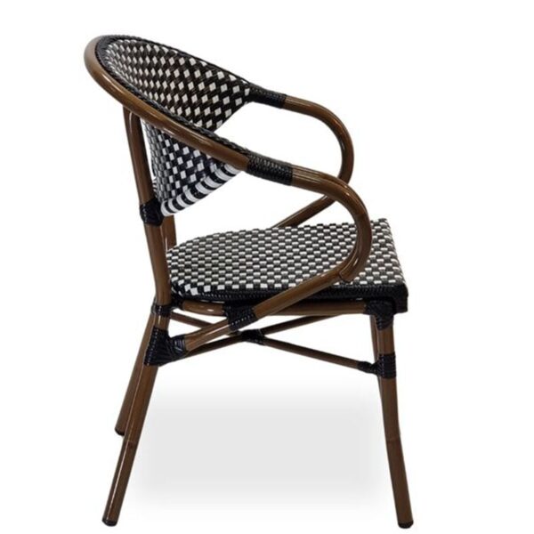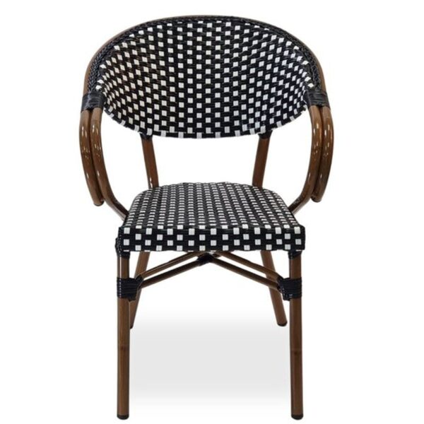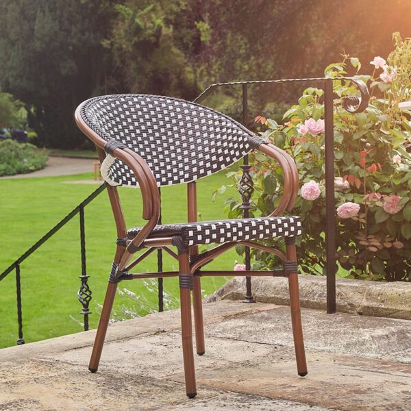 Step into the charm of Paris with the Emily Outdoor French Bistro Arm Chair, a classic piece that brings elegance and sophistication to any outdoor dining or drinking space. Crafted with a polypropylene wicker-effect weave, it offers rustic appeal while remaining durable and weather-resistant. The bamboo-effect lightweight aluminium frame adds both style and ease of mobility, making it simple to rearrange your seating. Designed with hospitality in mind, the Emily Arm Chair is stackable, allowing for convenient, space-saving storage without compromising on timeless bistro style.