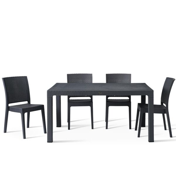 The Canterbury Outdoor Dining Set offers an ideal blend of elegance, durability, and practicality for any hospitality setting. Crafted from weather-resistant, rattan-style polypropylene with light-resistant pigments for UV protection, this stylish set is designed to withstand outdoor use all year round without fading.