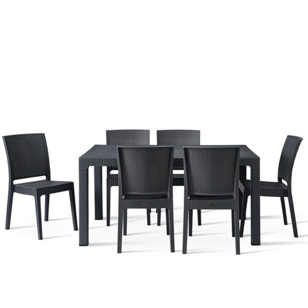 The Canterbury Outdoor Dining Set offers an ideal blend of elegance, durability, and practicality for any hospitality setting. Crafted from weather-resistant, rattan-style polypropylene with light-resistant pigments for UV protection, this stylish set is designed to withstand outdoor use all year round without fading.