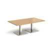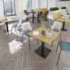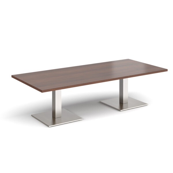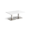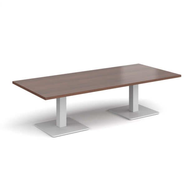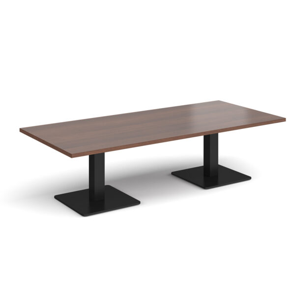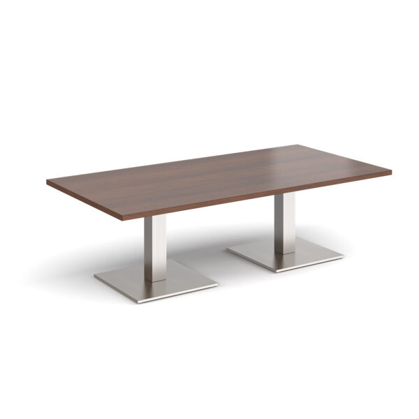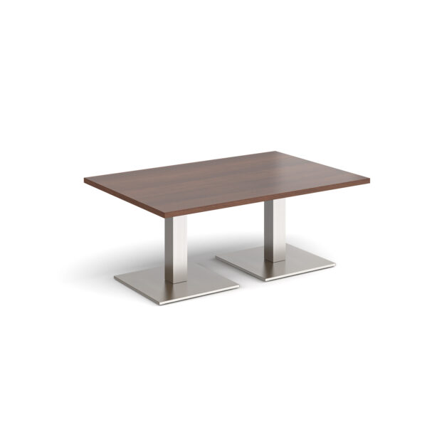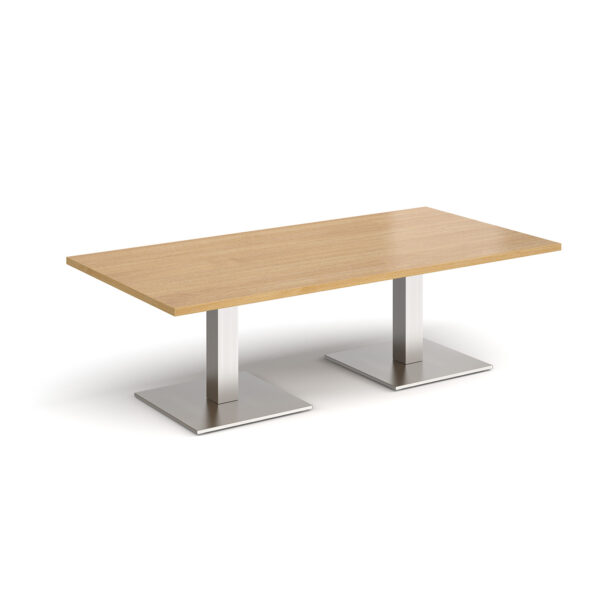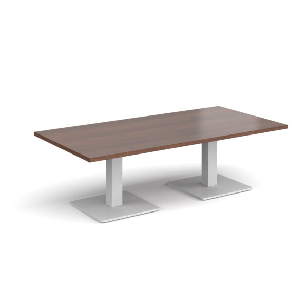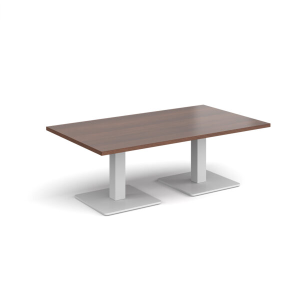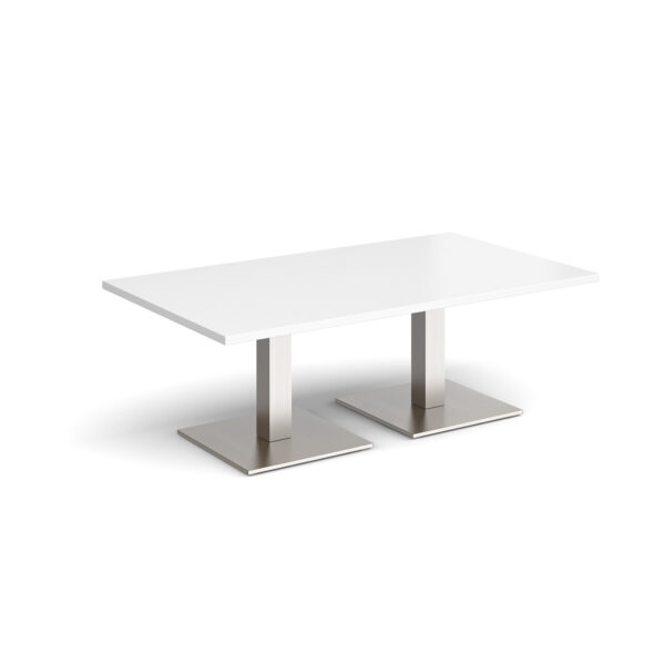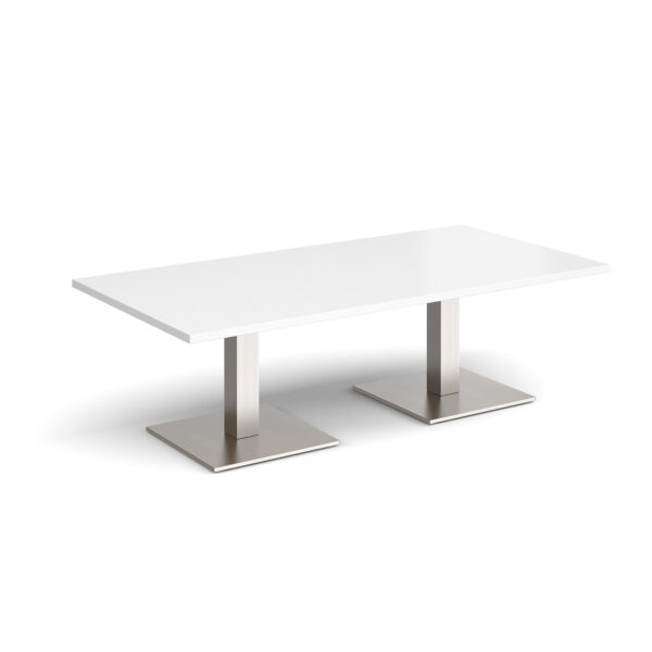 This rectangular coffee table features a 25mm tabletop in several finishes, supported by a square column and flat square base available in black, white, or brushed steel. Offered in four length options — 1200mm, 1400mm, 1600mm, or 1800mm — it’s a stylish and durable focal point for any modern workspace.