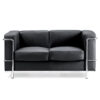 Belmont Cubed Black Leather Faced Two Seater Reception Sofa with Stainless Steel Frame