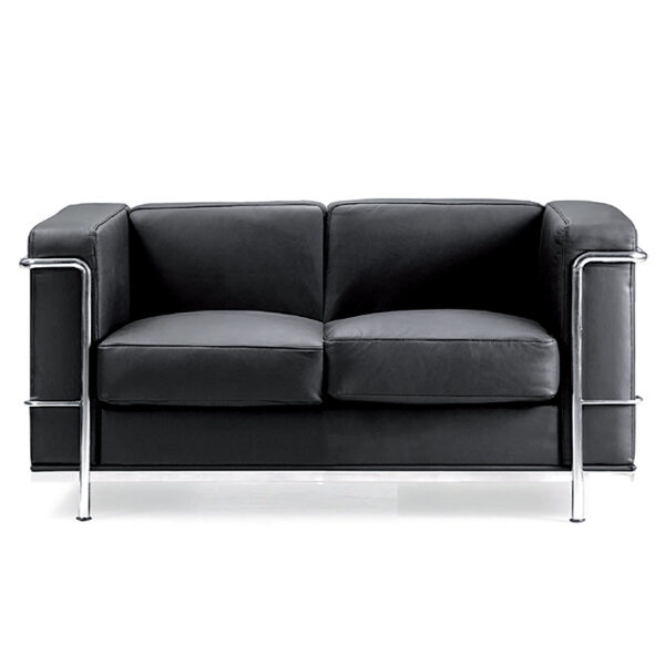 This contemporary cubed leather-faced reception sofa, available in black or ivory leather, is a striking statement piece, perfect for communal spaces, reception areas, and meeting rooms. Its oversized, deep-cushioned seats and low-height supportive backrest provide exceptional comfort, while the sleek stainless steel frame, with integrated leg supports that wrap around the sofa, creates a sophisticated ‘suspended’ effect.