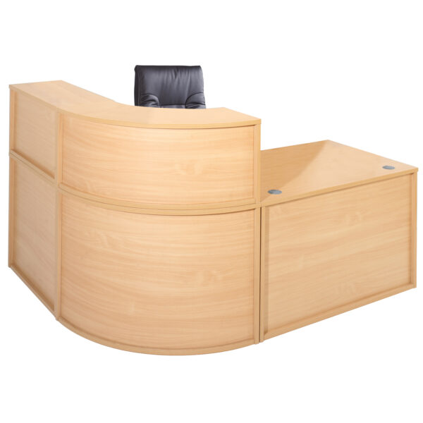 The reception area plays a crucial role in any business, providing a welcoming environment for visitors and staff alike. The Denver corner base unit is designed to form a curved desk layout, adding visual interest and functionality to any reception space. Available in beech or beech with white inserts, this robust unit comes fully assembled with 2mm ABS edging and adjustable height leveling feet, enabling versatile configurations that support multiple tasks while maintaining a professional and stylish appearance.