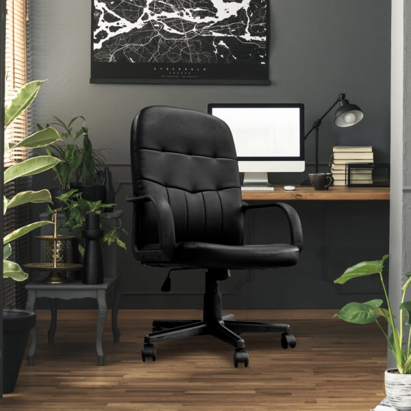 Orion Black Bonded Leather High Back Manager’s Office Chair with Lumbar Support