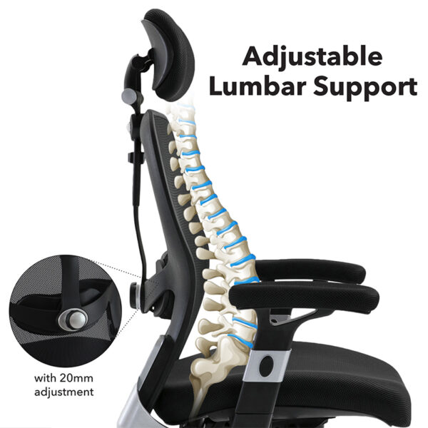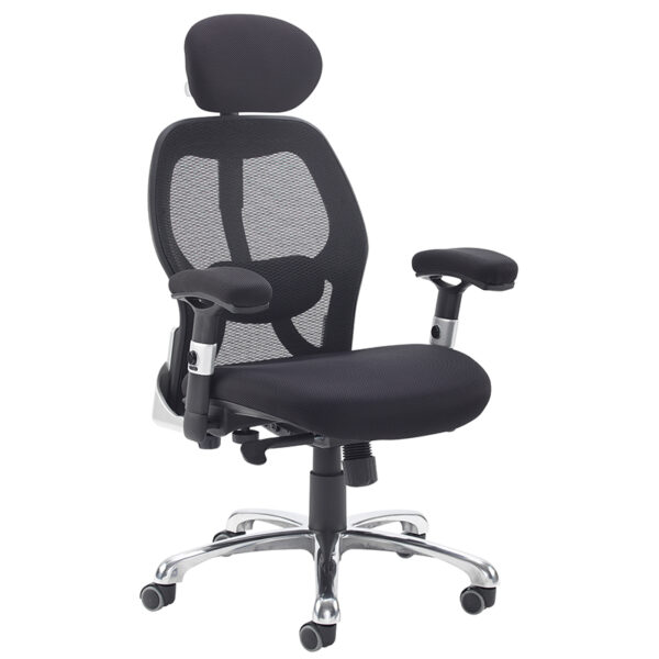 Sandro redefines modern mesh seating with a sleek fusion of function, comfort, and style. Designed for long hours at the desk, it features a deep-padded air mesh fabric seat with a waterfall front to ease pressure on the legs, paired with a breathable black mesh back that includes adjustable lumbar support and a headrest for tailored comfort. Chrome accents add a polished touch, while the asynchro mechanism allows for a free-floating back action with lockable seat and back positions. Adjustable black arms with chrome trim, gas lift height control, and weight tension adjustment complete Sandro’s ergonomic profile—making it an ideal choice for contemporary offices and workstations