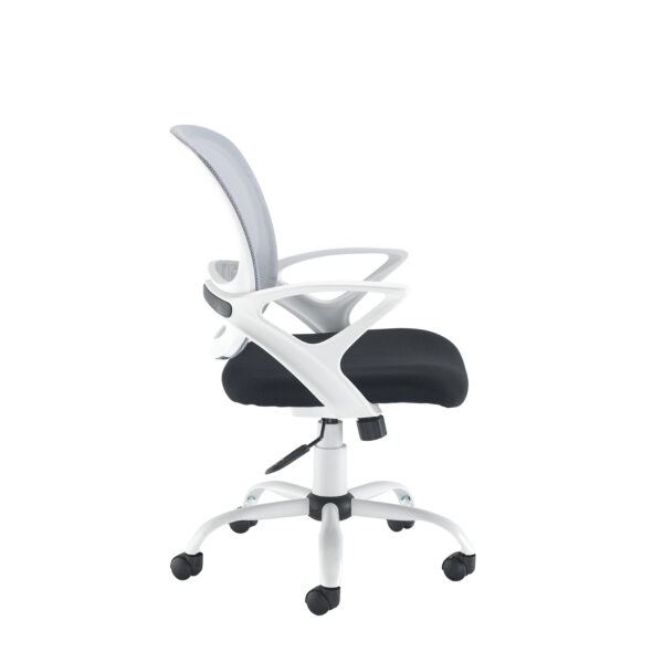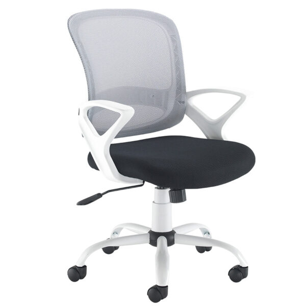 The Tyler Mesh Back Operator Chair delivers modern style and ergonomic comfort in a compact design. Featuring a breathable mesh back and a supportive black fabric seat pad, it’s ideal for long hours at your desk. With a durable five-star steel base and a space-saving profile, it’s perfect for both home and office environments.
