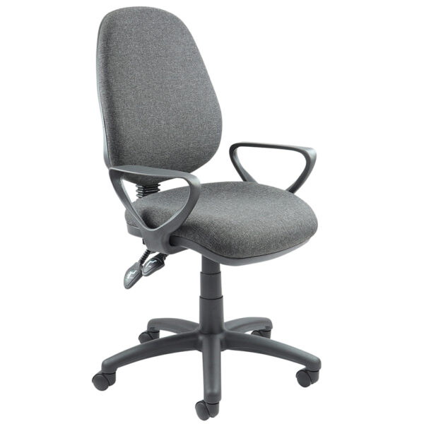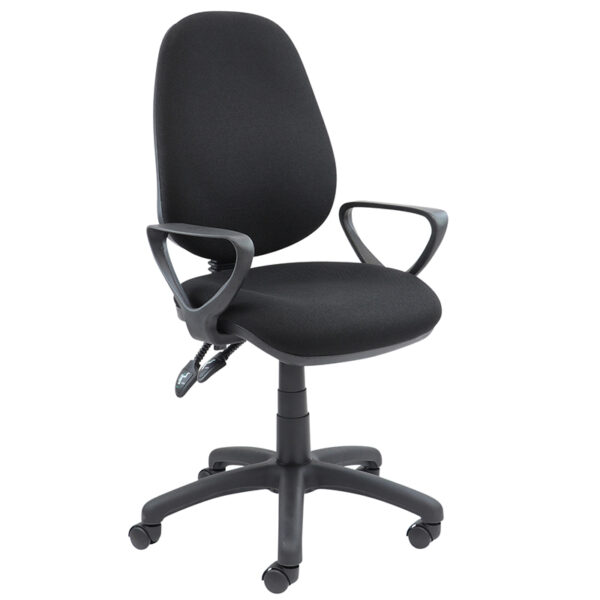 The Vantage 100 Operators Chair is a versatile, no-fuss task chair ideal for offices, reception areas, or home workspaces. Choose from five finishes and customize with no arms, fixed arms, or height-adjustable arms. Its contoured seat, adjustable back height and rake, and seat height promote comfort and reduce strain. The permanent contact back (PCB) lets you lock or free-float the backrest for personalized support. Affordable, ergonomic, and reliable—Vantage 100 delivers comfort where you need it most.