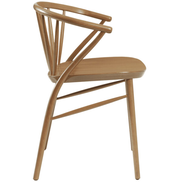 A timeless classic crafted from beech and inspired by the elegance of Scandinavian design. Designed with a subtle bentwood style and spindle back detailing, this piece is perfect for adding a touch of luxurious style to your venue. Each spindle back has two beautiful finishes, and an side chair counterpart is also available, allowing you to create an ambiance of sophistication throughout your dining space. Every Astrid Scandi Style Spindle Back Arm Chair features stunning, curved back leg details, providing superior support, whilst floor protectors are fitted to preserve delicate flooring. Thanks to its solid beech frame and bracing details between legs, each chair offers outstanding strength and stability, and is suitable for indoor use only. Add a timeless, classic touch of luxury to your restaurant, hotel or dining area with the Astrid Scandi Style Spindle Back Arm Chair.