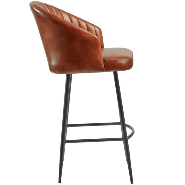 The Brooklyn Bar Stool is a high-end, luxurious piece of furniture that adds elegance to any interior space. Manufactured with genuine leather, this bar stool boasts an attractive ribbed backrest and sleek tapered legs that make it stand out in any venue.