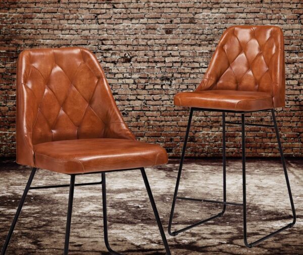 This stunning Harland Vintage Bar Stool is made from genuine leather that has been quilted for an added touch of texture and complexity. The seat is supported by a strong, sturdy sled frame that gives it an industrial look that is perfect for any indoor venue. The Harland Vintage Bar Stool is for indoor use only and comes with a 1-year guarantee, so you can be sure that it will last.