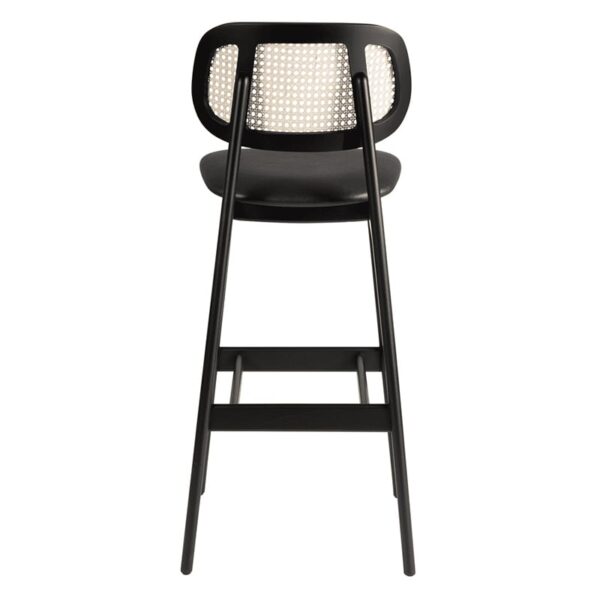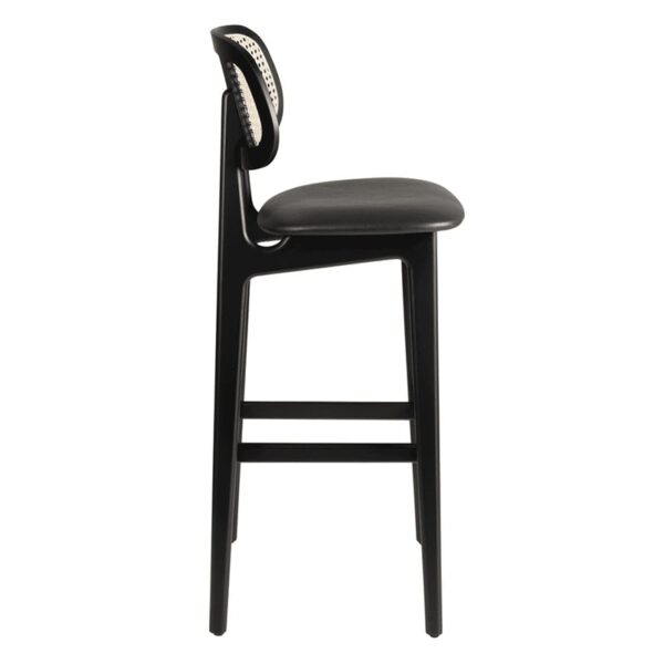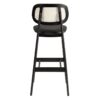 The Relish Bar Stool combines modern design with superior comfort, featuring a sturdy beech frame with a sleek black stain finish. The wide seat is upholstered in high-quality faux leather and available in three stylish colours, while the handcrafted natural cane back offers an ergonomic, sophisticated touch.