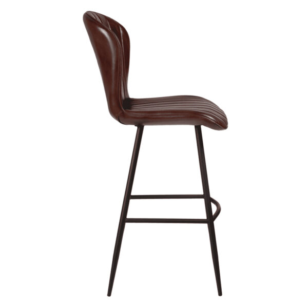 With a striking seashell design, this chair is an elegant statement piece for any space. Woven with top quality genuine leather and finished in luxurious Genuine Leather, this stool adds a touch of rich sophistication to your home or workspace. The modern tapered back and shaped seat provide the ultimate comfort for lounging and banquets alike; rich fluted vertical stitching adds to its designer feel. The iron metal frame is finished in a matt black powder coating which provides durability and contemporary style without compromising on clean lines; floor protectors also stop scratches and marks while staying true to its sleek design. Perfect for hospitality, workspace or student living – the Scallop Bar Stool is designed to fit in with any lifestyle while turning heads with its timeless beauty.