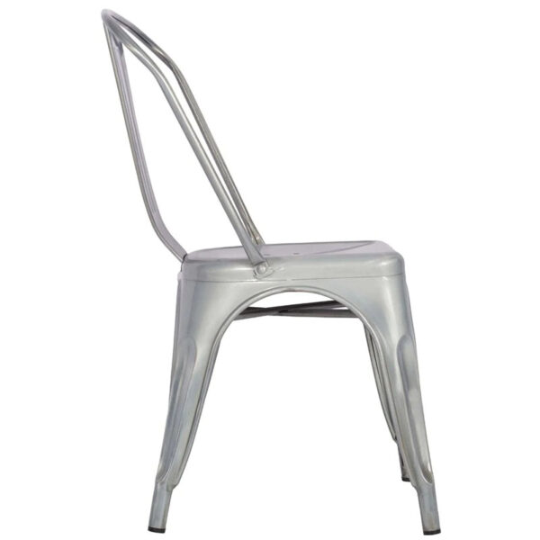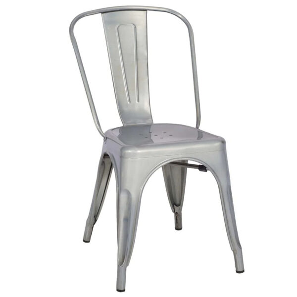 Look no further than the French Bistro Industrial Side Chair. This contemporary Tolix-style chair features a unique design that is sure to add a touch of class to any setting. It is finished in natural steel with a Grey finish, and comes with an optional Solid Ash seat pad. The chair is also stackable, making it easy to store when not in use. Plus, it comes with a 1 year guarantee. So why wait? Order your French Bistro Industrial Side Chair today!