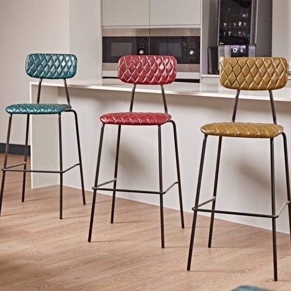 A stylish and practical addition to any restaurant, bar, cafe or indoor venue. This chic bar stool is upholstered in the finest faux leather and finished with diamond stitching, giving it a luxurious look that will enhance any interior. The clear powder coated raw steel frame gives it a chic industrial style, whilst the leather upholstery gives a slightly vintage look which is popular with restaurants, bars, hotels and indoor venues. The Croft Vintage Faux Leather Bar Stool is available in five colours and would make a great addition to any social space.