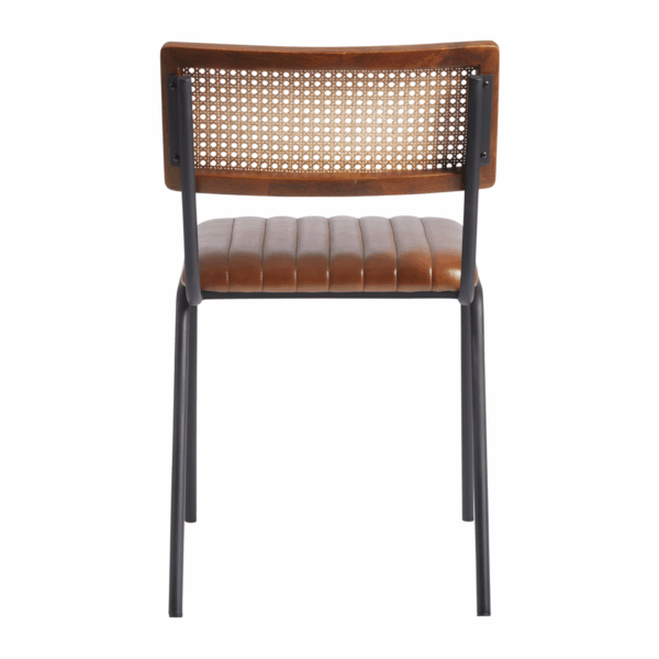 The Fleetwood Side Chair showcase a unique ribbed upholstery pattern with a stunning natural cane back rest,adding a touch of refined elegance that beautifully contrasts against the sturdy tubular metal frame. Our side chairs are not only visually stunning but designed to withstand the test of time, featuring a robust iron black frame suitable for indoor use only.