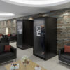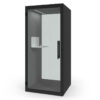This booth provides everything required for focused, private conversations, featuring an interior finished in acoustic, echo-absorbing fabric. Its clean, contemporary look is complemented by a sturdy sheet-metal exterior available in either black or white.
