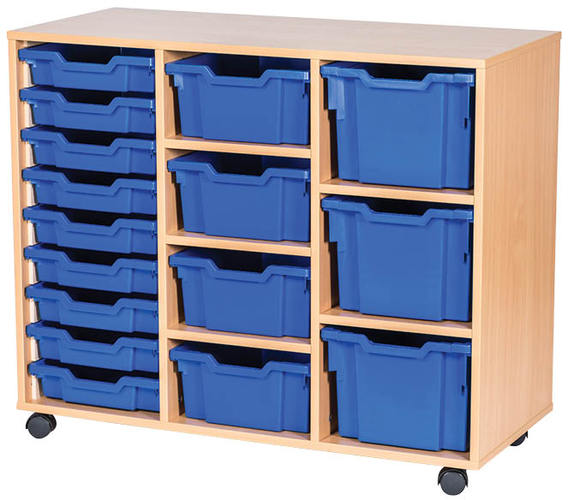 16 Mixed Tray Triple Bay Mobile or Static Classroom Storage Unit – 861mm High