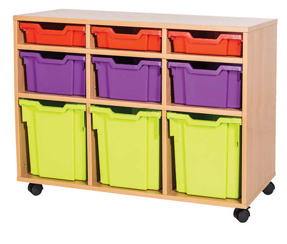9 Mixed Tray Triple Bay Mobile or Static Classroom Storage Unit – 697mm High