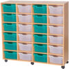 The 24 Deep Quad Bay Tray Unit is a premium, UK-manufactured storage solution designed for durability and versatility. It comes complete with 24 deep Gratnell trays, available in a wide range of sixteen colours, allowing you to customise the look to suit your space. The unit itself is offered in five attractive finishes—Beech, Maple, Oak, Grey, and White—ensuring it blends seamlessly with any environment. Built from robust 18mm MDF with solid 8mm MDF backs, it delivers long-lasting strength and reliability. Optional doors and locks with safety hinges provide added security while preventing finger traps, and you can choose between a static or mobile version to suit your needs. With its fixed shelf design and high-quality construction, this tray unit is a practical and stylish choice for classrooms, offices, and organised storage spaces.