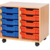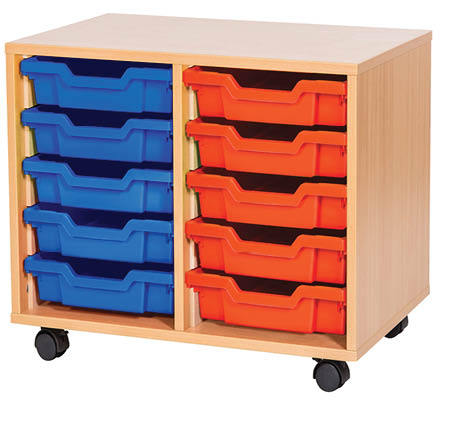 This 10-tray double bay mobile unit is a premium, UK-manufactured solution designed for durability and versatility. It includes ten Gratnells trays, available in a choice of sixteen vibrant colours, and offers optional doors and locks fitted with safety hinges to prevent finger traps. Constructed from robust 18mm MDF with solid 8mm MDF backs, this unit is built to last and comes with a five-year manufacturer’s warranty for added peace of mind.