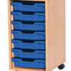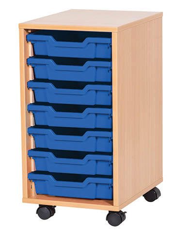 This 7 Tray single mobile unit is a premium, UK-manufactured storage solution designed for durability and versatility. It includes seven Gratnells trays, available in a wide selection of 16 colours, allowing for customisation to suit any environment. The unit is offered in Beech, Maple, Oak, Grey, or White finishes, with optional doors and locks featuring safety hinges to prevent finger traps. Built from robust 18mm MDF with solid 8mm MDF backs, it can be configured as either static or mobile to meet your specific needs