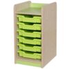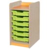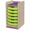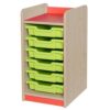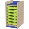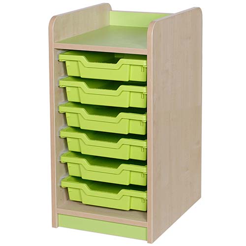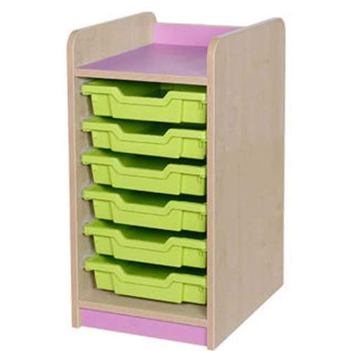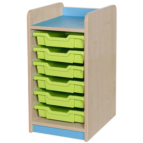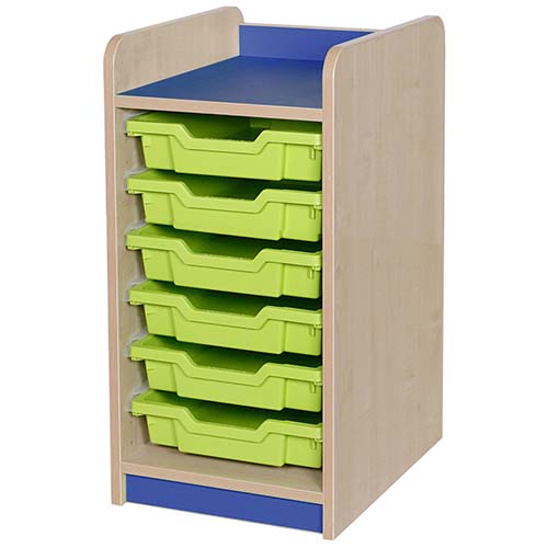 The Single Bay KubbyClass 6 Tray Unit is a premium-quality storage solution, proudly manufactured in the UK. Designed with children in mind, this unit features a single bay structure and is crafted from durable Maple MDF, with an alternative Beech finish also available. Its 2mm bump-resistant PVC plywood-effect edging enhances both safety and longevity. The unit is offered in a choice of seven vibrant colour themes and includes six shallow Gratnells trays, available in a palette of sixteen colours to add a cheerful touch to any school, nursery, or home setting. Each tray glides smoothly on easy-runner mechanisms, ensuring effortless access. Backed by a five-year guarantee, this unit combines functionality, durability, and style in one versatile package.