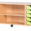 This robust UK-manufactured unit offers flexible storage for classrooms, nurseries, or creative spaces. With 10 Standard Gratnells trays and one adjustable shelves, it’s designed to organise resources with style and practicality.
