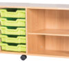 10 Tray Mobile or Static Quad Bay Classroom Storage Unit With End Shelf – 533mm High