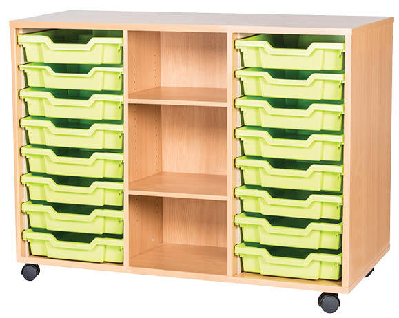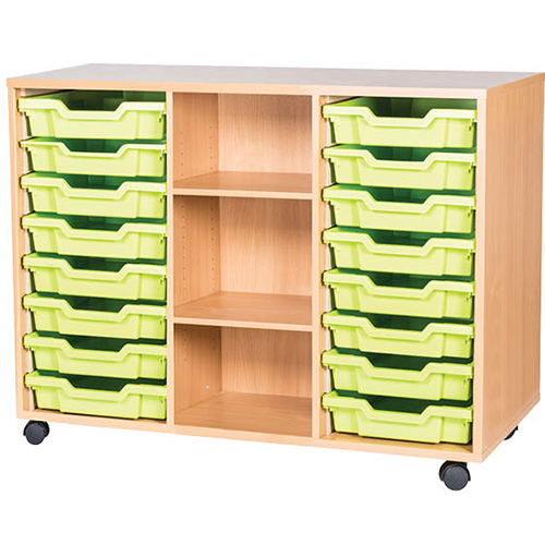16 Tray Mobile or Static Triple Bay Classroom Storage Unit With Centre Shelves – 779mm High