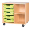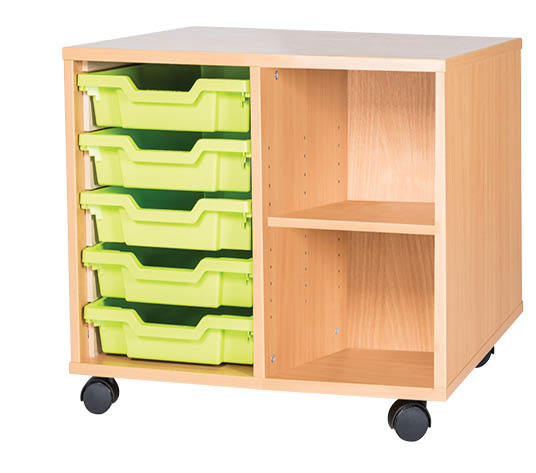 5 Tray Mobile or Static Double Bay Classroom Storage Unit With End Shelf-533mm High
