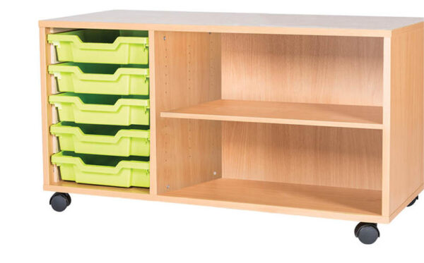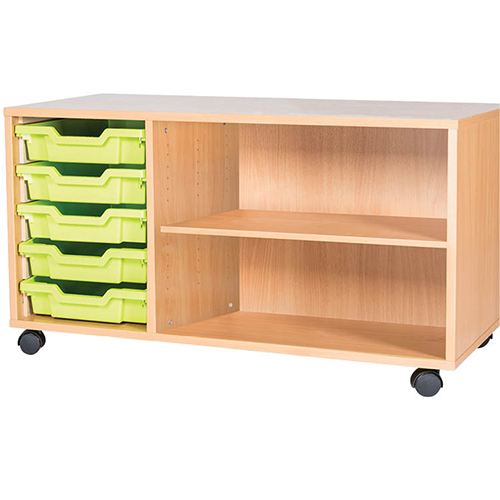 5 Tray Mobile or Static Triple Bay Classroom Storage Unit With End Shelf-533mm High