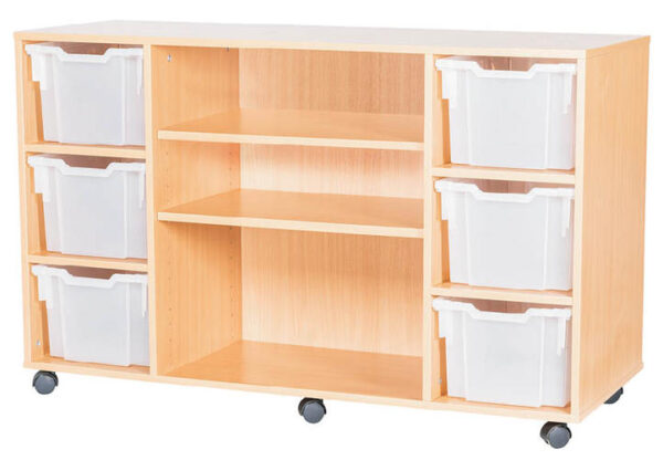This robust UK-manufactured unit offers flexible storage for classrooms, nurseries, or creative spaces. With 6 Extra Deep Gratnells trays and two adjustable shelves, it’s designed to organise resources with style and practicality.