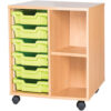 6 Tray Mobile or Static Double Bay Classroom Storage Unit With End Shelf-615mm High