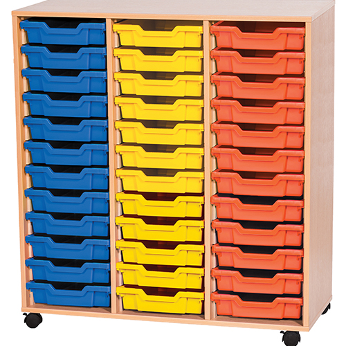 This 36-tray triple bay mobile unit is a premium, UK-manufactured solution designed for durability and versatility. It includes 36 Gratnells trays, available in a choice of sixteen vibrant colours, and offers optional doors and locks fitted with safety hinges to prevent finger traps. Constructed from robust 18mm MDF with solid 8mm MDF backs, this unit is built to last and comes with a five-year manufacturer’s warranty for added peace of mind.